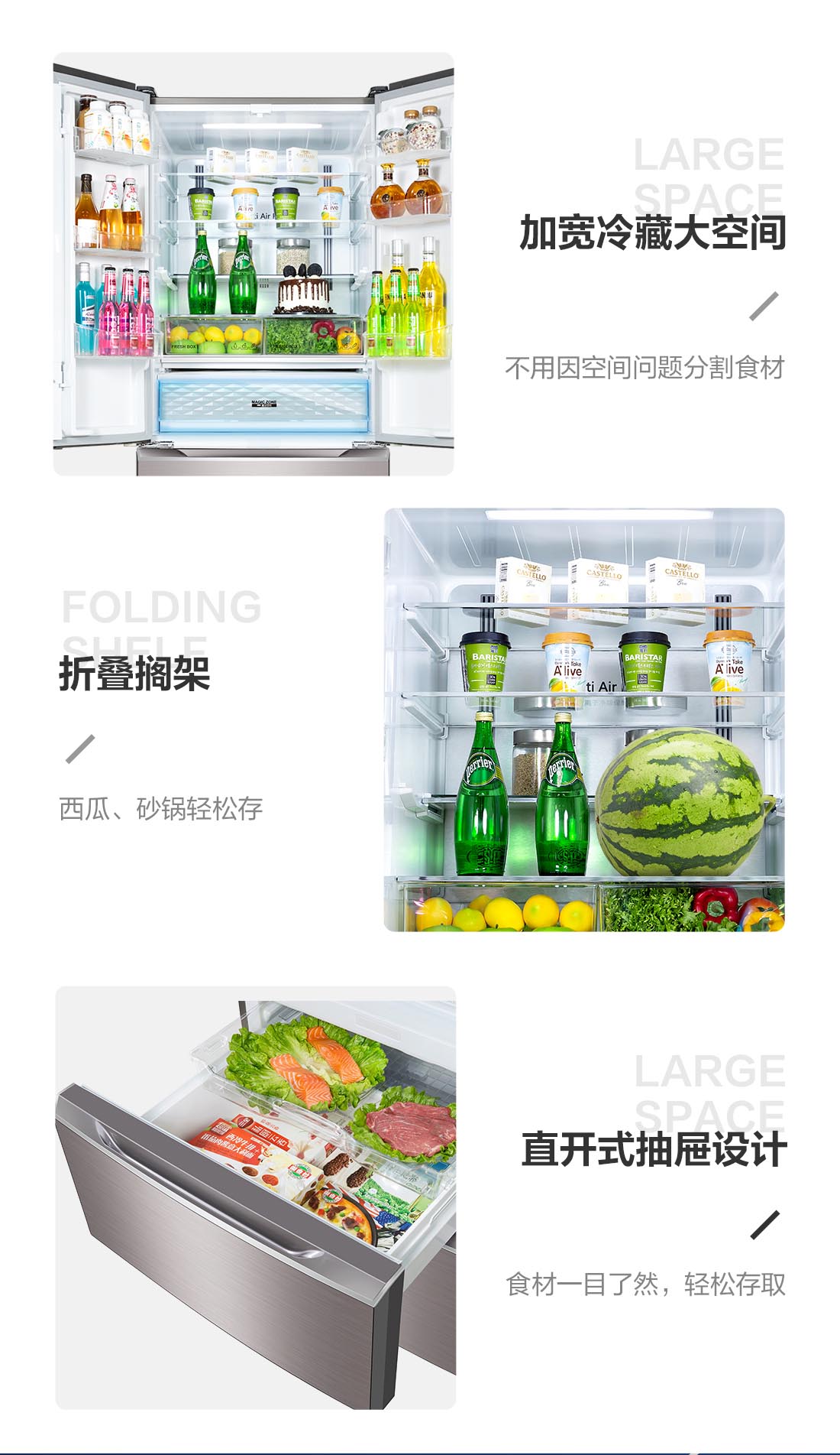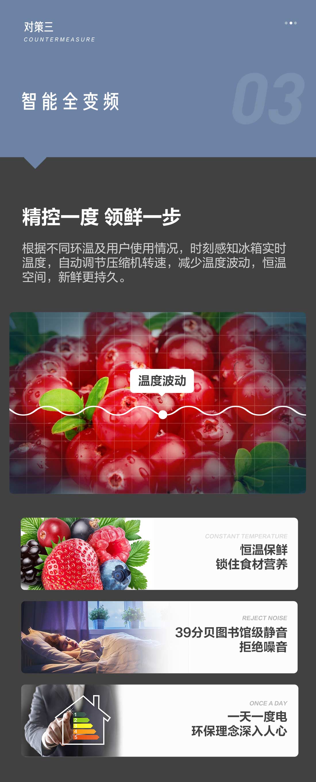搭載-5℃瞬凍黑科技,鮮嫩兩星期,輕松一刀切。細胞級養(yǎng)鮮,營養(yǎng)流失少。搭載-3℃嫩凍黑科技,食材不結冰,鮮嫩一整周。智能全變頻技術,恒溫保鮮,節(jié)能靜音。