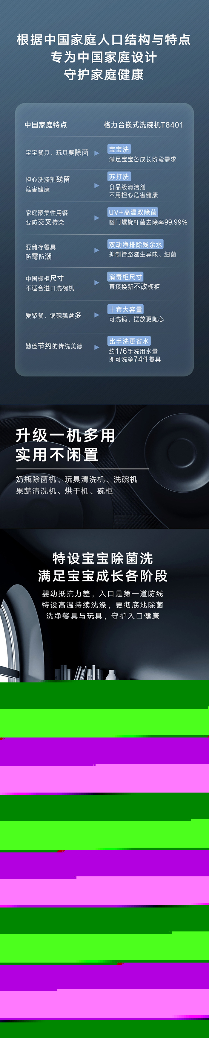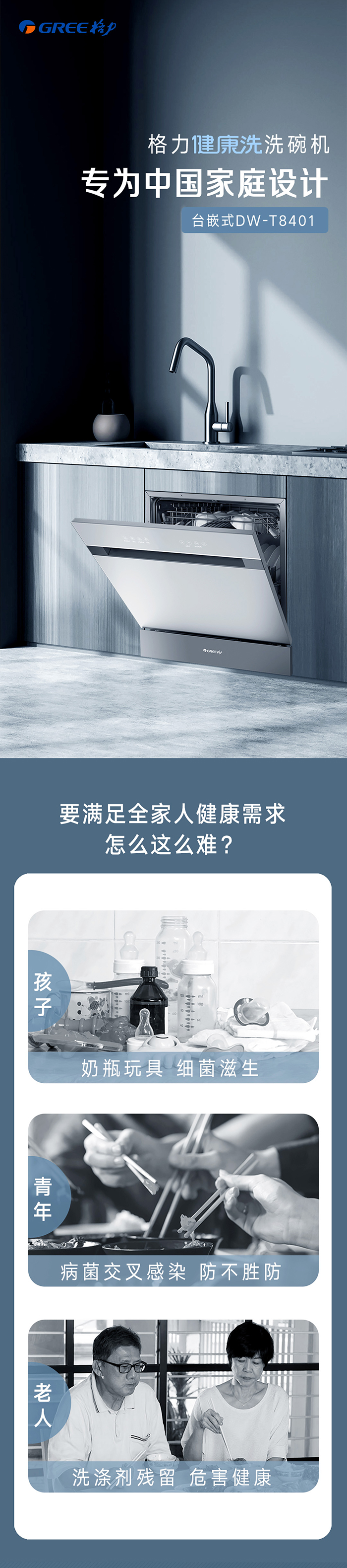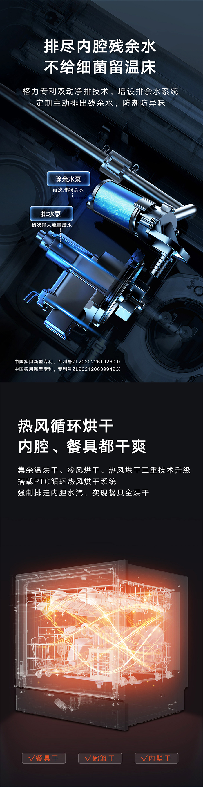 格力健康洗洗碗機(jī),專為中國(guó)家庭設(shè)計(jì);洗除排烘存更全能;熱風(fēng)循環(huán)烘干,內(nèi)腔餐具都干爽