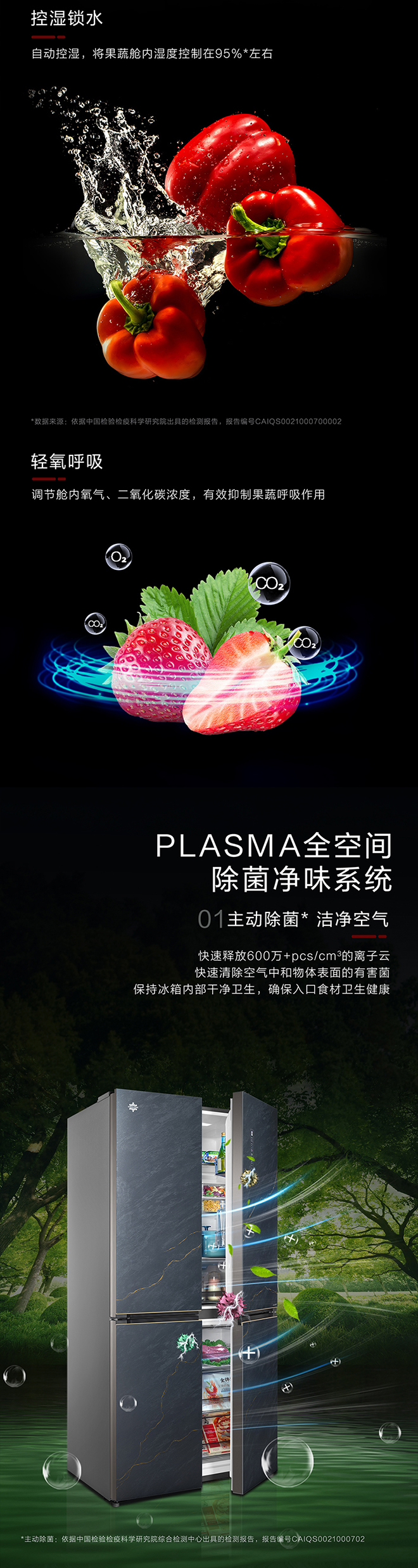-38℃超凍鎖鮮;PLASMA全空間除菌凈味;平齊不凸出;雙通道循環(huán)散熱