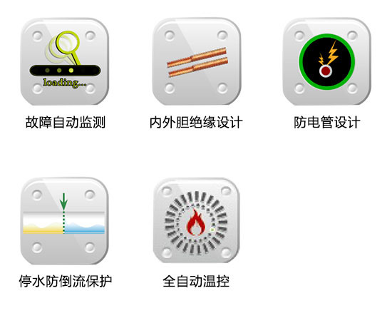 配有漏電開關(guān)保護、防電管設(shè)計、意外漏電保護、停水防倒流保護、超壓保護等多項保護功能,讓您使用安全無憂。