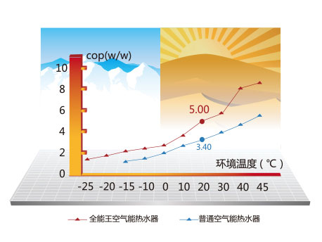 *與普通空氣能熱水器額定工況能效比3.4對比