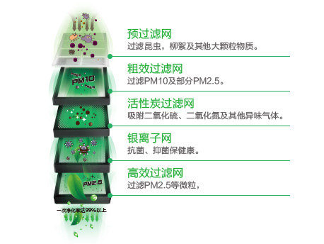 創新使用五層過濾模式,徹底隔絕顆粒進入室內,經權威結構檢測,一次過濾效率達99.4%,貼心呵護家人健康。