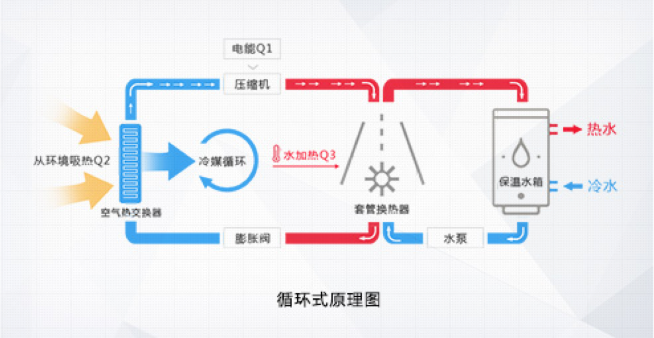 格力空氣能熱水器,傳承空調(diào)核心科技,以消耗一部分電能為補償,通過熱力循環(huán),從周圍環(huán)境的低品位能源(空氣源)取得熱量,通過壓縮機將其輸送至冷凝器,釋放給水箱內(nèi)的水將其加熱。它的工作原理與空調(diào)制熱時的原理相類似,只是空調(diào)是 從自然環(huán)境中吸取熱量,供給室內(nèi)空氣,而空氣能熱水器是以這部分熱量加熱生活熱水,其能效比是電熱水器的4倍,是燃氣熱水器的5倍,是太陽能熱水器的近2倍,是一種新型的高效、節(jié)能、環(huán)保的熱水器產(chǎn)品。一度電的付出,4倍熱量的收獲!